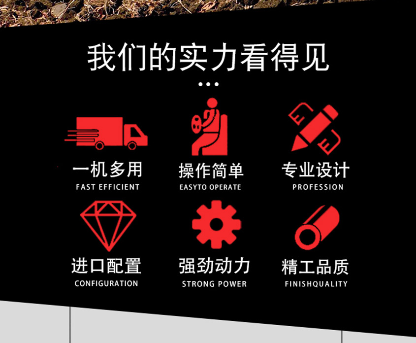 2、國內品牌12馬力柴油發動機,品牌液壓系統、配置高,性能優越,油耗低。